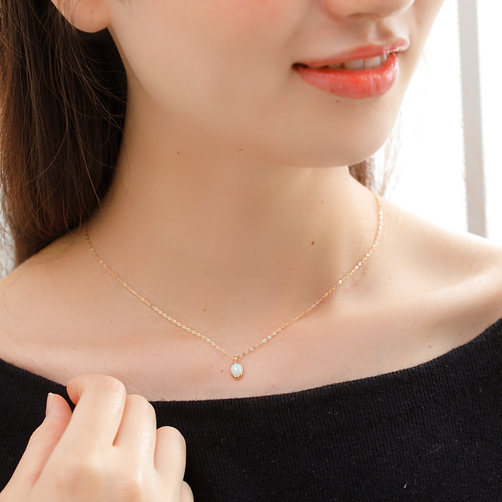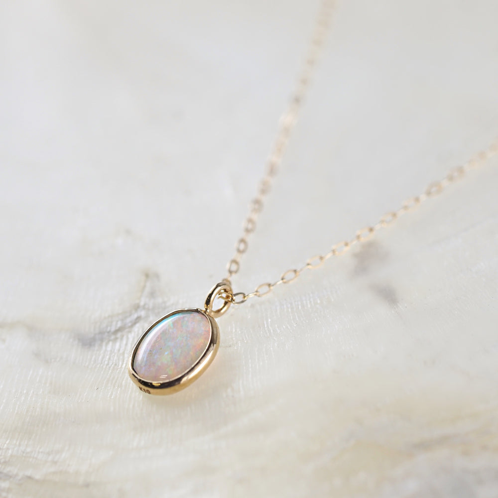 オーロラのように遊色効果が美しいオパールのネックレス。